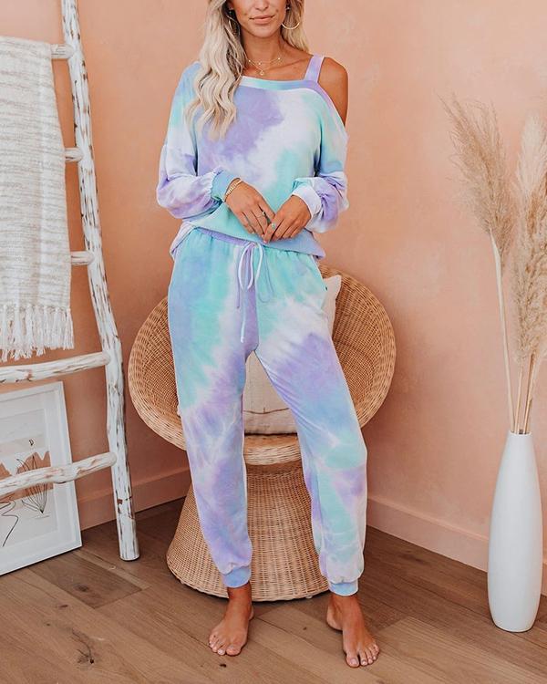 Theme:Summer,Fall,SpringNeckline:O NeckPattern Type:Tie DyeStyle:CasualSleeve Type: Long SleevesMaterial: PolyesterPackage included:1 *LoungewearNoteDue to the difference between different monitors, the picture may not reflect the actual color of the item.